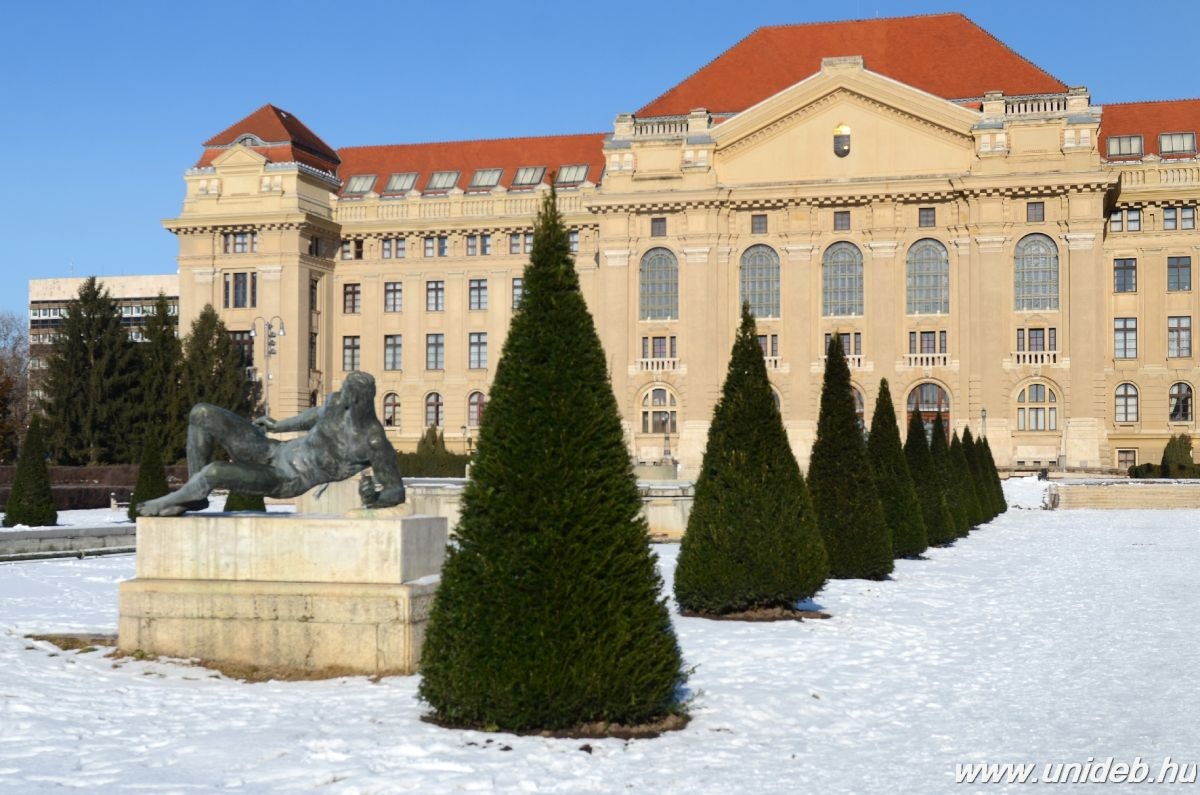 Régóta megoldásra váró feladat oldódott meg a Debreceni Egyetem Hallgatói Önkormányzatának kezdeményezésére év végén. Az egyetem és a területet fenntartó önkormányzat támogatásával a Főépület előtti parkban a szökőkutat övező elöregedett tujasor helyén mostantól őshonos tiszafák sorakoznak.