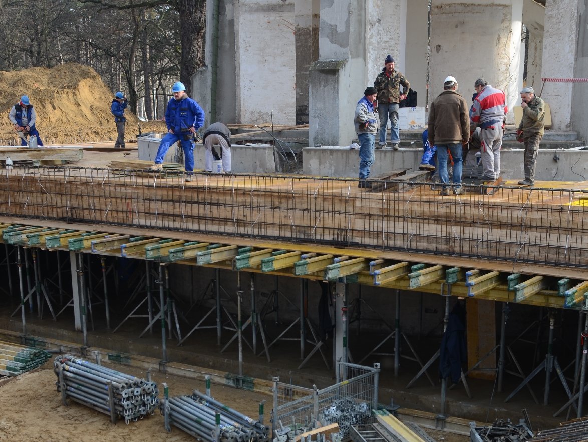 A Debreceni Egyetem főosztályvezetője elmondta: jelenleg az épületet körülölelő domb alatti építmény kialakításának utolsó nagy fázisa, a födémépítés van folyamatban, valamint megkezdődött a nyílászárók gyártásának előkészítése.