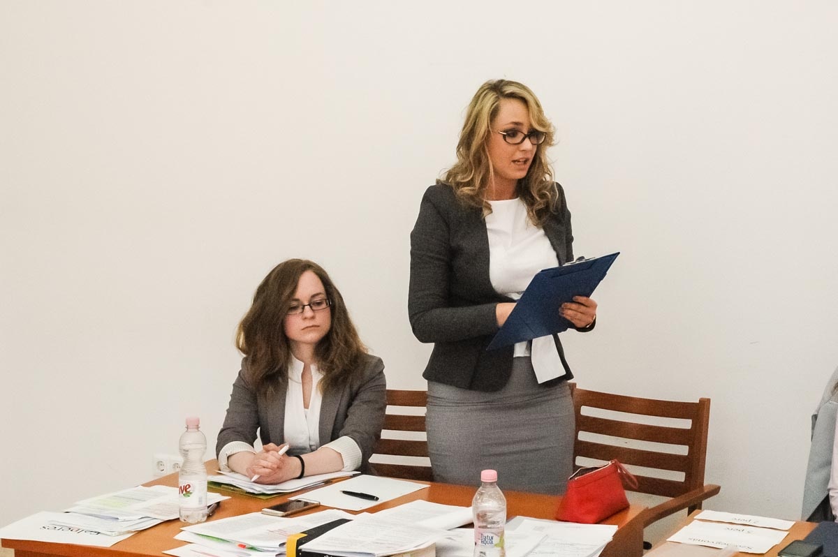A zsűri a csapatok teljesítményének értékelésekor az írásbeli és a szóbeli feladat teljesítésének színvonala fotó: Marinkás Györgymellett figyelembe vette a résztvevők retorikai képességeit, perbeszédeik jogi szakszerűségét és az ellenérdekű fél, valamint a bíróság kérdéseire adott válaszok színvonalát is. Idén a fiktív jogeset témája az Európai Unió légi-közlekedési szabályozása volt.