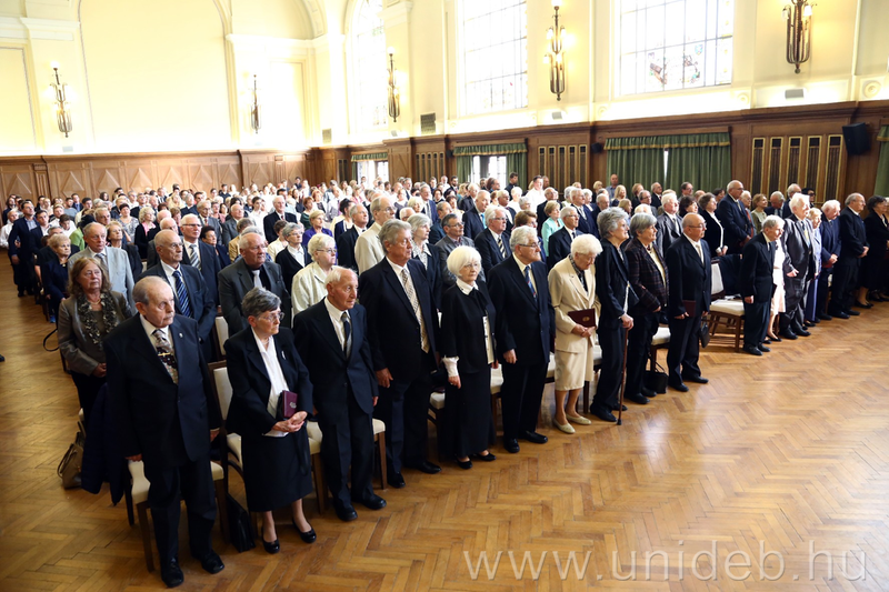 Életpályájuk példaértékű a fiatal kollégák számára – hangsúlyozta Mátyus László dékán az 50, 60 és 65 éve végzett orvosok díszoklevél átadó ünnepségén szombaton a Debreceni Egyetem Aulájában.