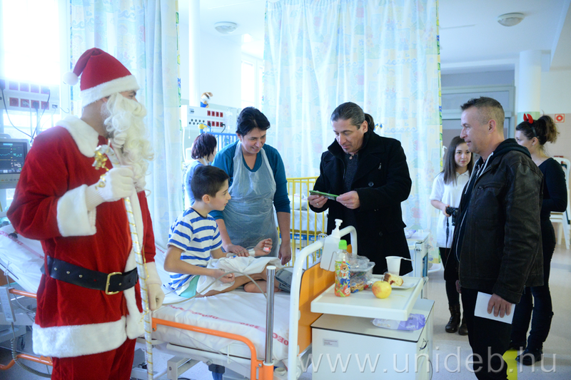 Ajándéközönnel szerzett örömet a beteg gyermekeknek december 6-án a Debreceni Egyetem karitatív szervezetének Mikulása, aki a hagyományokhoz hűen idén is mentőkutyaszánon érkezett a Klinikai Központba. A Télapó hűséges segítői, Árnyék és Sprite, valamint kedves krampuszok kíséretében, vidám meglepetésekkel kedveskedett a gyerekeknek.