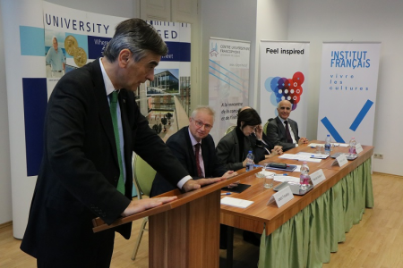 A francia és a magyar kulturális kapcsolatokról, a francia nyelvtanítás anyagi korlátainak a megszűnéséről szólt köszöntőjében Prof. Dr. Trócsányi László. A magyar kormány széles francia kapcsolatrendszerrel rendelkező igazságügyi minisztere 1989 óta oktatója a Szegedi Tudományegyetem Állam- és Jogtudományi Kar hallgatóinak. Az SZTE ÁJTK Alkotmányjogi Tanszék professzora, az SZTE ÁJTK Nemzetközi és Regionális Tanulmányok Intézet szakfelelőse mellett az SZTE BTK Romanisztika Intézet Francia Nyelvi és Irodalmi Tanszék oktatói, számos középiskolai nyelvtanár is kifejtette a francia kultúra közvetítésével kapcsolatos álláspontját, összegezte tapasztalatait.