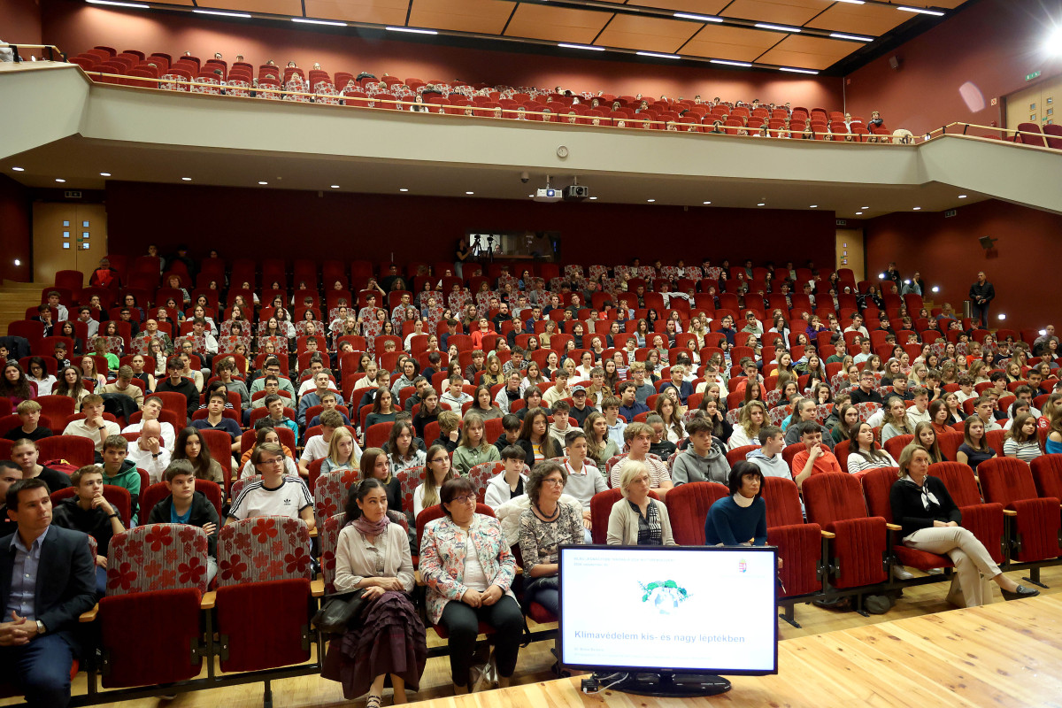 – Az óra végét általában a csengetés jelzi, de talán ez az egész óra egy csengetés volt, a végét pedig éppen egy kis csend jelezheti. Köszönöm az előadók értékes gondolatait, amelyek mindenki számára több, mint megfontolandók. Ismert a mondás, hogy ha egy ajtó becsukódik, akkor egy másik kinyílik. Itt most ez az óra becsukódik, viszont nagyon sok másik lehetőség teremtődik arra, hogy az iskolákban a kollégák más diákokkal is megismertethessék ezeket a fontos gondolatokat. Arra is lehetőségünk van, hogy ezek után a tettek mezejére lépjünk, és mindenki nézze meg, mi van a táskájában, hogy mi minden található a tankönyvek mellett, vagy hogy délután mi lesz a bevásárlótáskában, esetleg az ajtó helyett ha ablak nyílik ki, akkor az hogyan hat a klímára. Tennivaló bőven van, és ez a mai alkalom a cselekvésre hív fel bennünket – mondta el az intézményvezető.