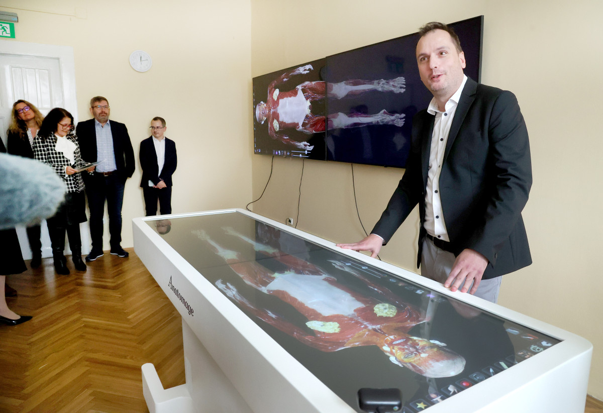 Részletgazdag virtuális környezetben tanulmányozhatják a hallgatók az emberi test anatómiai szerkezetét azon az anatómiai asztalon, amelyet hétfőn adtak át a Szegedi Tudományegyetem Egészségtudományi és Szociális Képzési Karán. Az oktatás színvonalát emelő fejlesztések a karon folyamatosak, jelenleg további 250 millió forint értékű beszerzés van folyamatban.