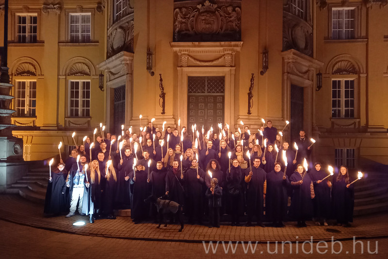 A Debreceni Egyetem Állam- és Jogtudományi Kar (ÁJK) végzős hallgatói, a kar vezetői és néhány oktatója talárba öltözve gyülekezett a Déri Múzeum előtt, fáklyákat gyújtottak, majd egy csoportkép elkészítése után a Bethlen utca – Egyetem sugárút útvonalon az Egyetem térig sétáltak.