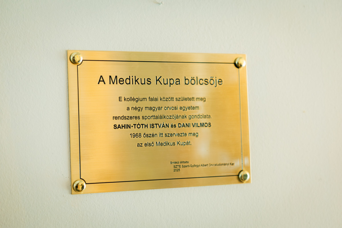 2025. április 12-én, szombaton az id. Jancsó Miklós Kollégium előterében emléktáblát avatott Prof. Dr. Lázár György, az SZTE Szent-Györgyi Orvostudományi Kar dékánja, és a Medikus Kupa két ötletgazdájának hozzátartozói, amely örök emléket állít a mostanra egyedülálló sportrendezvény létrehozóinak.