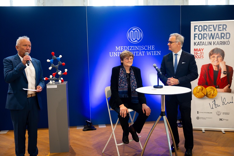 A bécsi Collegium Hungaricumban május végig látható kiállítás a Szegedi Tudományegyetem szervezésében arról a több mint száz tudományos elismerésről, melyekkel az elmúlt években elismerték Karikó Katalin munkáját.