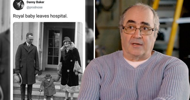 A 61 éves Danny Baker, a hír- és sportműsorokat, betelefonálós és beszélgetős programokat sugárzó BBC Radio 5 Live egykori műsorvezetője a Twitter portálra egy olyan képet töltött fel, amelyen egy férfi és egy nő egy elegánsan felöltöztetett csimpánzt vezet kézen fogva. Az azóta törölt kép alatt “egy királyi bébi távozik a kórházból” felirat volt olvasható.