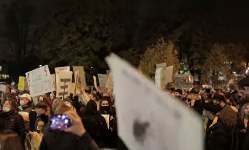A tömeg azt követeli, hogy az abortusz korlátlanul legyen elérhető, és követelik a kormány leváltását is. Sok vulgáris jelszó hallatszik, a tüntetők petárdákat, jelzőfényeket lőnek ki.