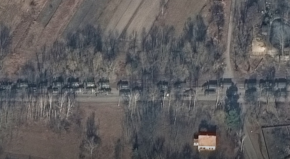 Az 5 kilométer hosszú, katonákat, tankokat, gyalogsági harcjárműveket és tüzérséget szállító katonai járművek százait magában foglaló menetoszlop akkor az ukrán fővárostól körülbelül 60 kilométerre volt.