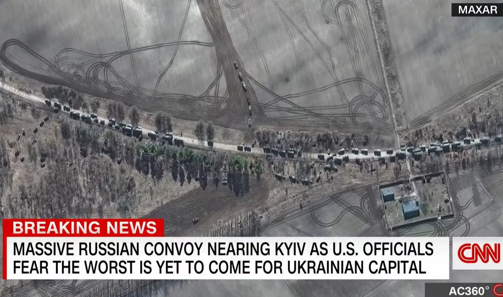40 mérföldes, vagyis 64 kilométer hosszú orosz konvojt vett észre a Maxar nevű amerikai cég műholdja – számolt be a CNN.