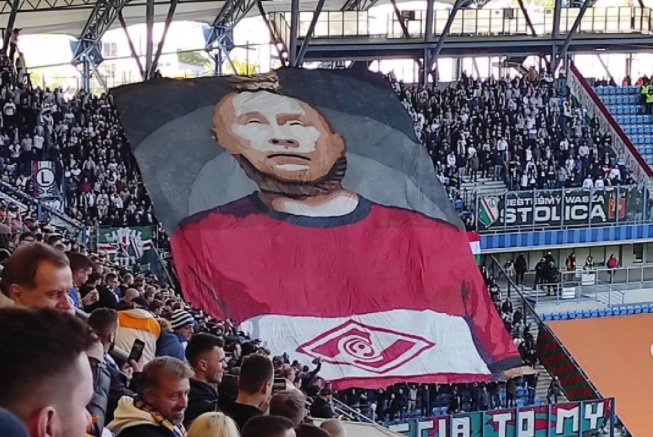 Fans of the Legiа Warsaw hung a banner with Putin in a noose. Putin with a noose around his neck and a T-shirt of the Russian club “Spartak Moscow” – such a banner was hung by Warsaw fans during the match between “Legia” and “Lech” on Poznan.🇵🇱🇺🇦♥️ pic.twitter.com/1JN29VoUnO