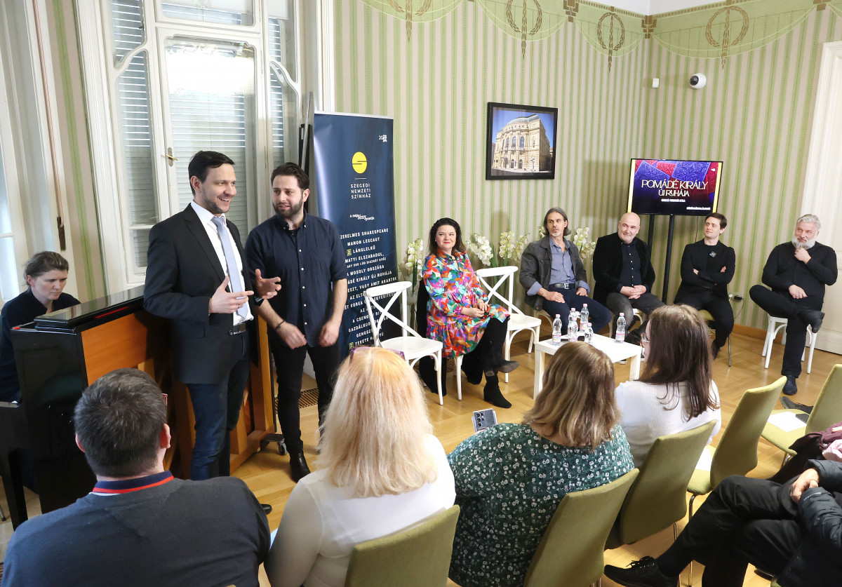 Szeged, Pomádé király új ruhája című gyermekopera közönségtalálkozója a Reök palotában.