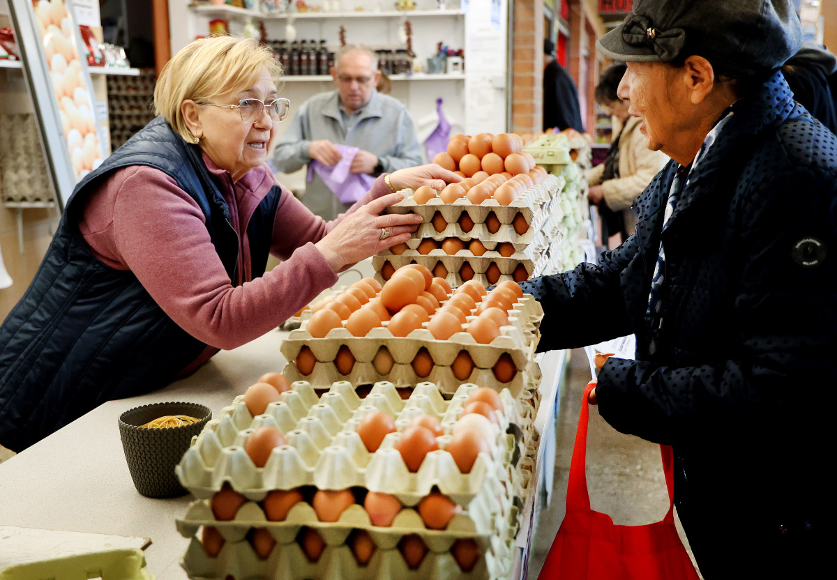 Szeged, folyamatosan érkezik a friss tojás Kotogány család Mars téri standjához. A vásárlók húsvét előtt 40-50 darabot is vesznek.