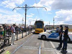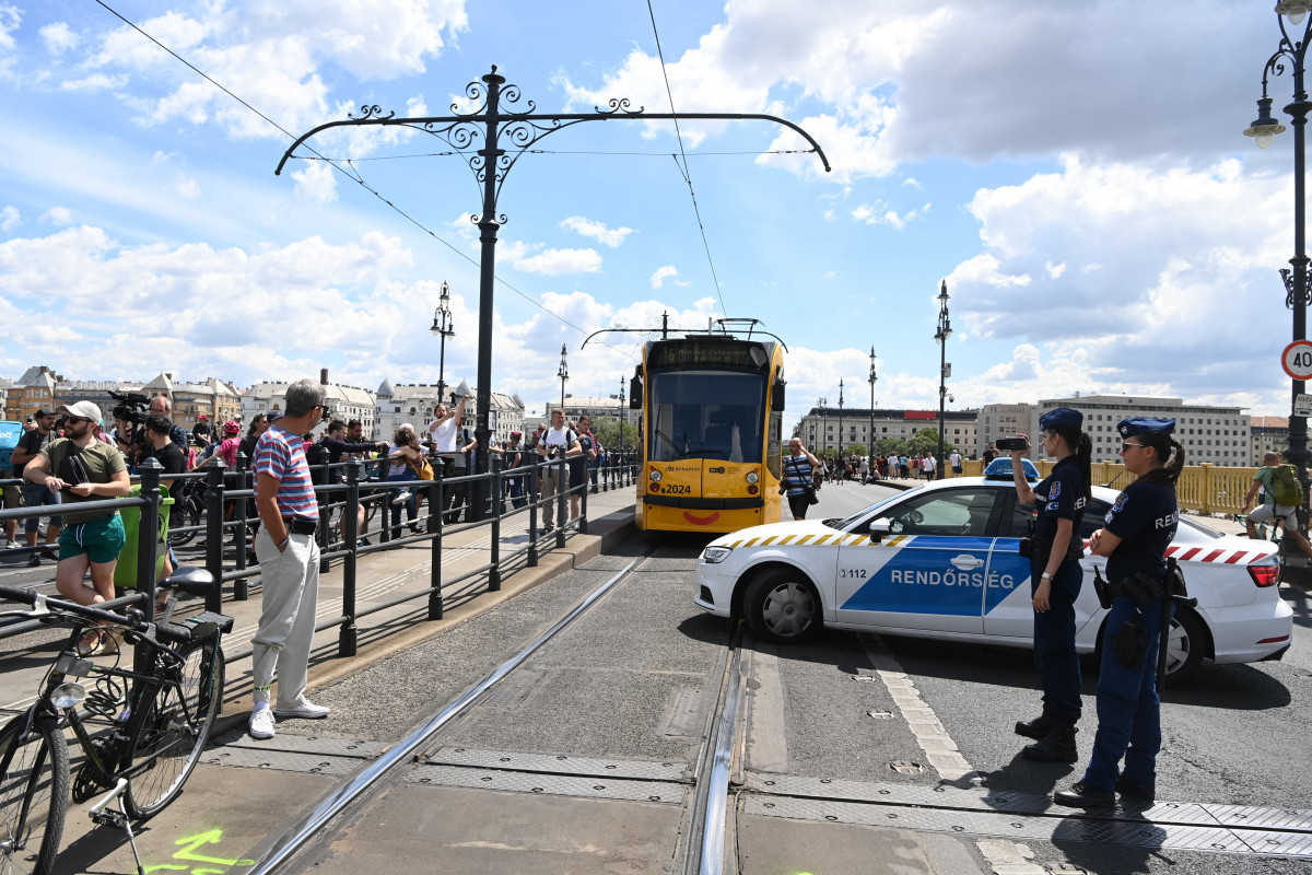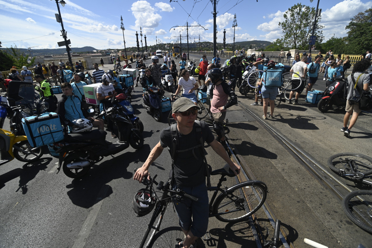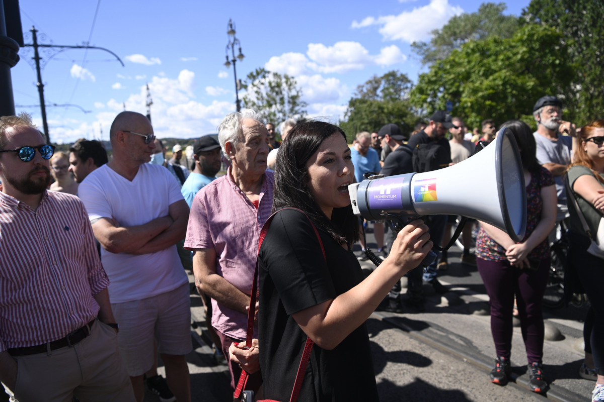 A kisadózó vállalkozók tételes adója (kata) tervezett módosítása ellen tiltakozók a Margit híd budai pesti hídfőjénél 2022. július 12-én. Fotók: MTI/Balogh Zoltán és Bruzák Noémi. A parlamenti szavazásról és a végeredményről itt olvashatnak.