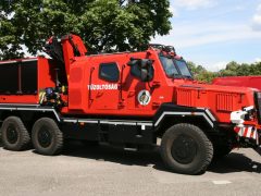 Mindezt a legújabb és muzeális mentők, rendőrautók szomszédságában, többek között itt áll a BM OKF állományában szolgáló magyar fejlesztésű és gyártású Kommondor tűzoltókocsi, meg a tatabányai kapitányság veterán Golfja.