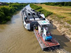 Szombaton már a Sió-csatornán úsztak a Balatoni Hajózási Zrt. (BAHART) vadonatúj személyszállító hajói, amelyek szerdán indultak Komáromból.