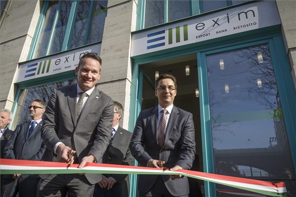 Puskás András, az Eximbank üzleti vezérigazgató-helyettese (b) és Papp László polgármester átvágja a nemzetiszínű szalagot a bank észak-alföldi képviseletének avatásán Debrecenben 2015. február 5-én. MTI, fotó: Czeglédi Zsolt