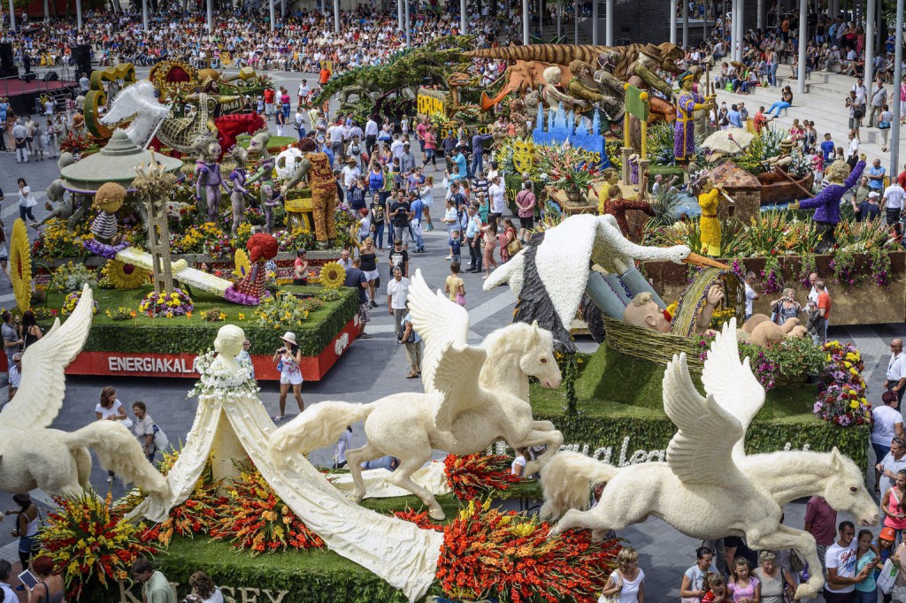 Bódor Edit közlése szerint az augusztus 20-ai karneváli menetben a 16 virágkocsi mellett 12 ország művészeti csoportjait, köztük 19 magyar csoportot láthat majd a közönség. A 16 virágkocsihoz több millió szál élő és száraz virágot használnak fel készítőik.