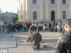 A Kossuth téren ismeretterjesztő anyagokkal várták az érdeklődőket a honvédség munkatársai. A program nem fukarkodott a show-elemekkel sem, íme: