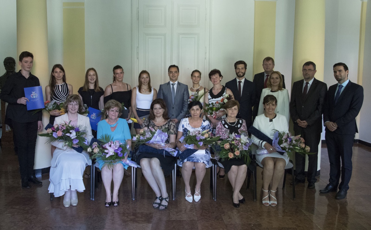A kitüntetettek nevében dr. Balla Györgyné óvodavezető beszélt, majd a díjazottakat a 2015-ben Debrecen Város Közoktatásért kitüntetéssel díjazott Százszorszép Óvoda Szivárvány nagycsoportjának óvodásai (Ádám Noel Gergely, Kovács Klára Krisztina, Kovács Boglárka Barbara és Mensáros Anna Dorka – felkészítő óvodapedagógusuk Rácz Zoltánné, hangszeres kísérőjük Kovács Mihály Máté óvodapedagógus volt) köszöntötték. Ezt követően a Kodály Zoltán Zeneművészeti Szakközépiskola és Zeneiskola tanítványainak, Bencze Máténak és Vincze Marcellnek szaxofonos előadásában csendült fel J. B. Singelée Duo Concertant című művének I. tétele. A Kodály Filharmónia Debrecen Kodály Kórus tagjai, Bejan Miklós, illetve Bődi Kármen előadásában pedig George Enescu Languir me fais című dala, illetve Carl Orff Carmina burana című művének két tétele hangzott el.