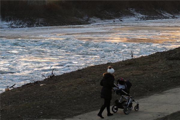 Jégtáblák torlódtak össze a Közép-Tiszán