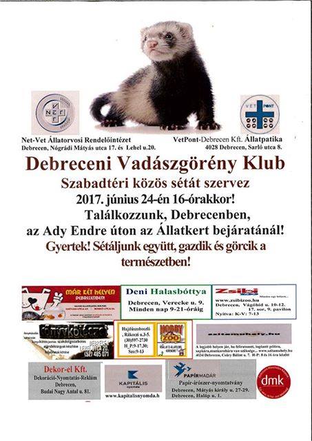 Gazdikat és görényeket várnak közös sétára június 24-én, 16 órakor a debreceni állatkert bejáratánál.