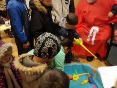 A közel száz gyermeket játékkal és sok-sok szaloncukorral, nyalókával várták.
