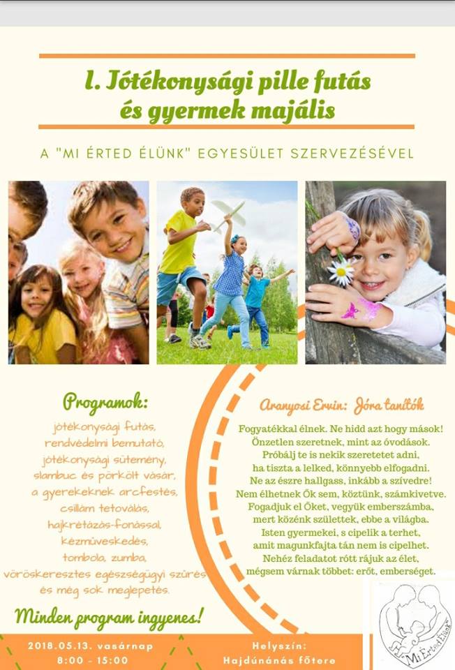 A „Mi Érted Élünk „Egyesület gyermekeinek támogatására rendezik hagyományteremtő céllal az I. Jótékonysági PILLE futást Hajdúnánáson.