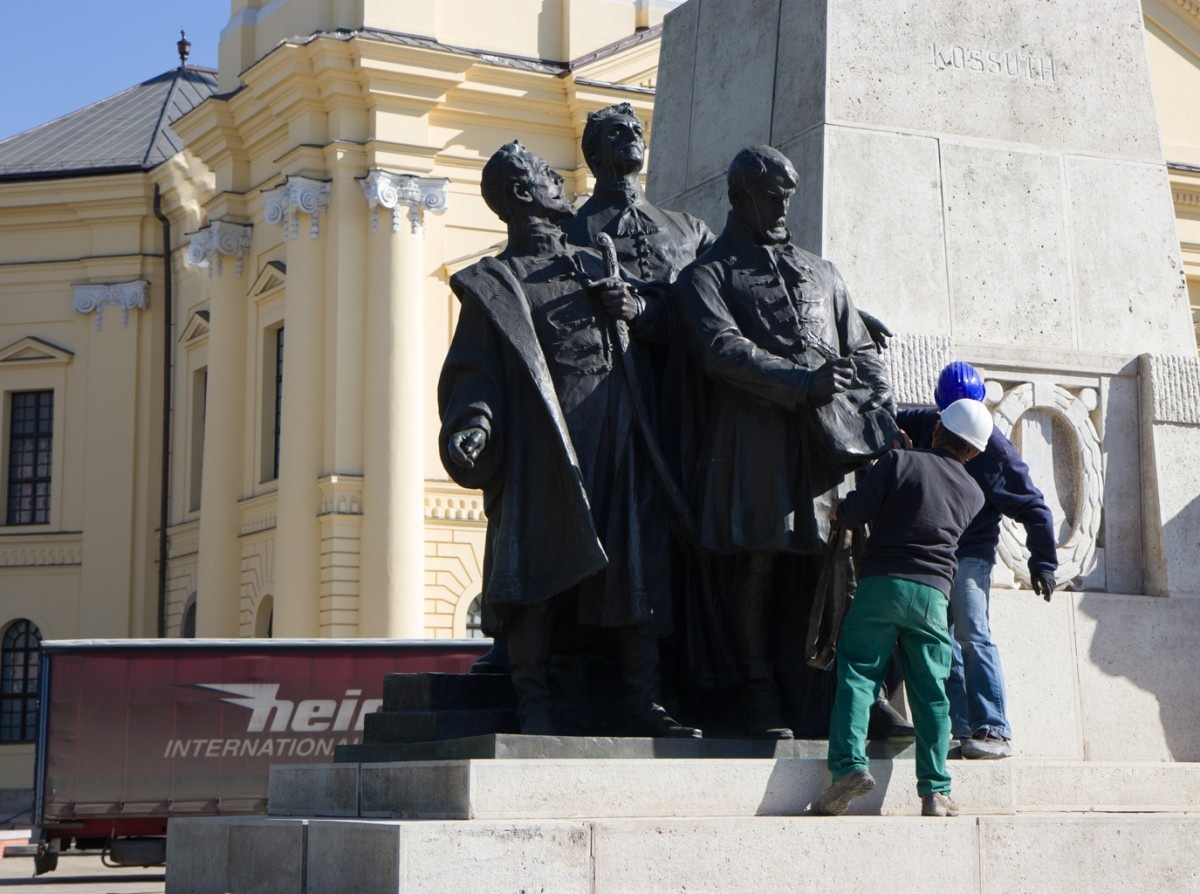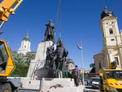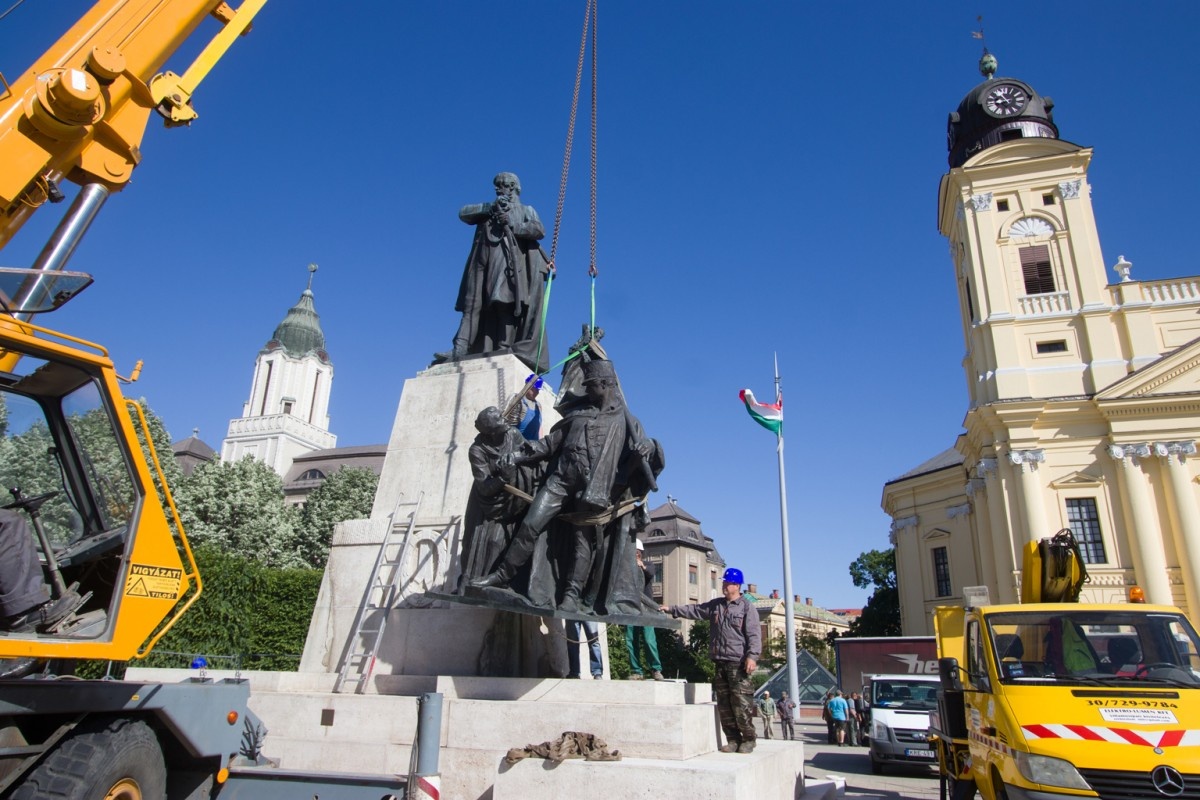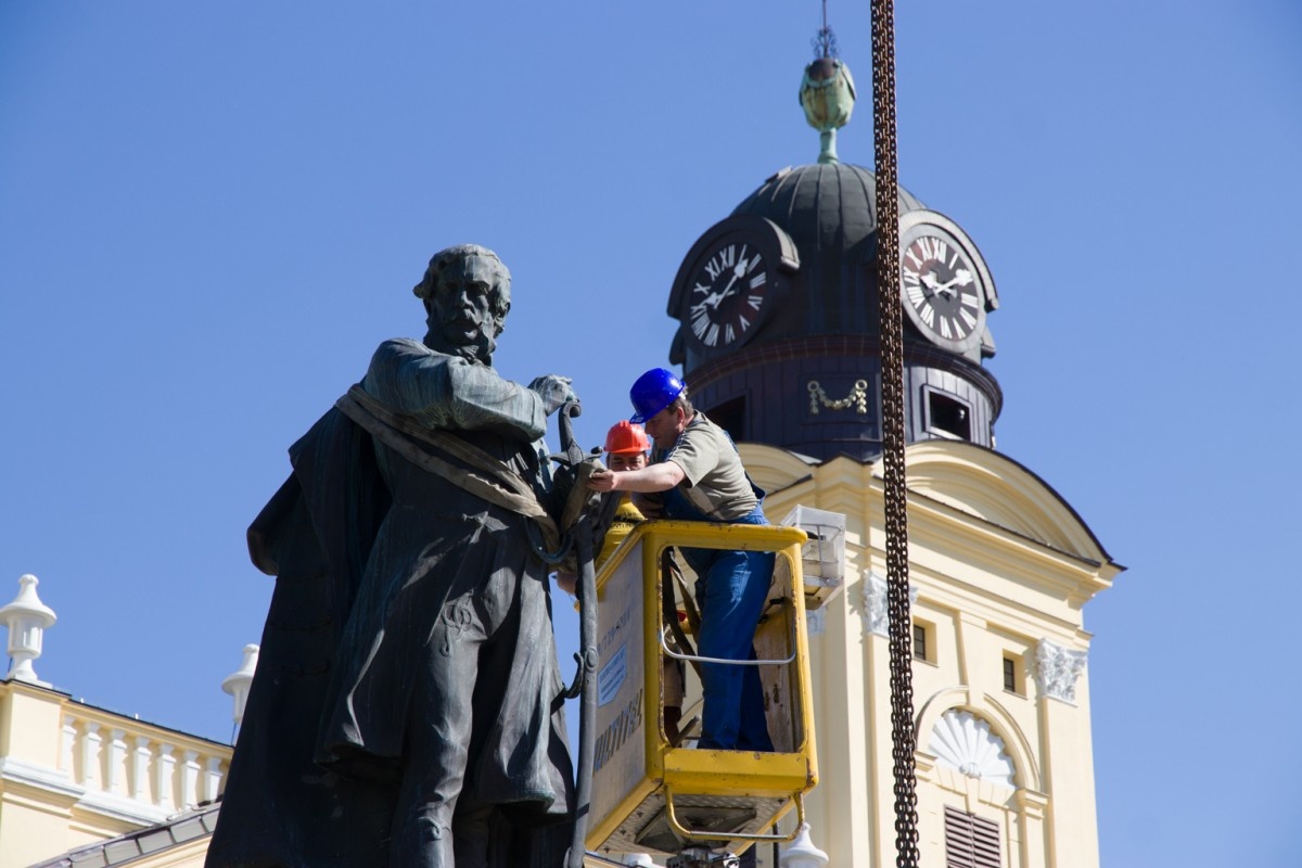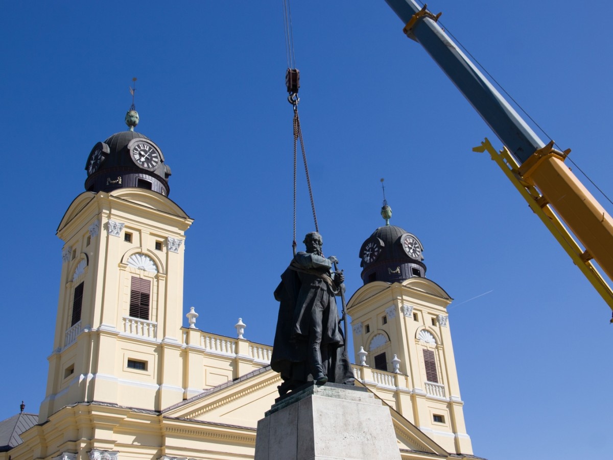 Elvitték a Kossuth-szobrot Debrecen főteréről, még a virágkarnevál előtt visszahelyezik.