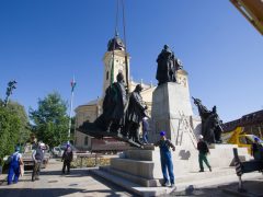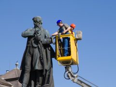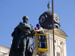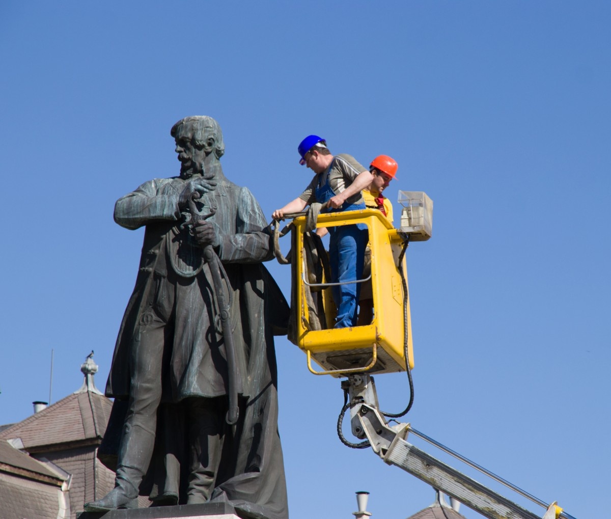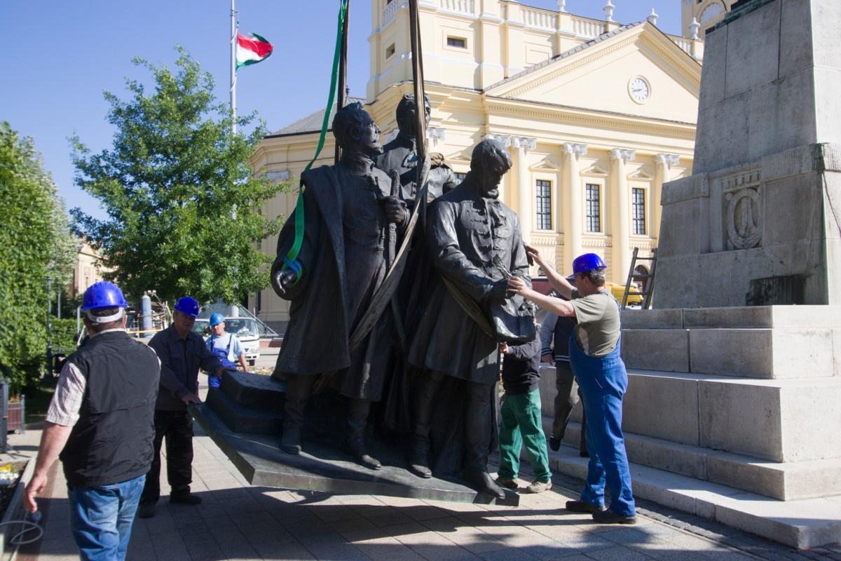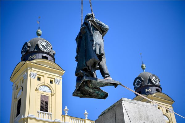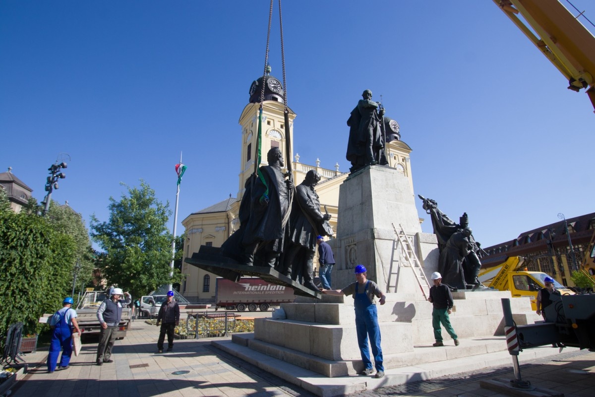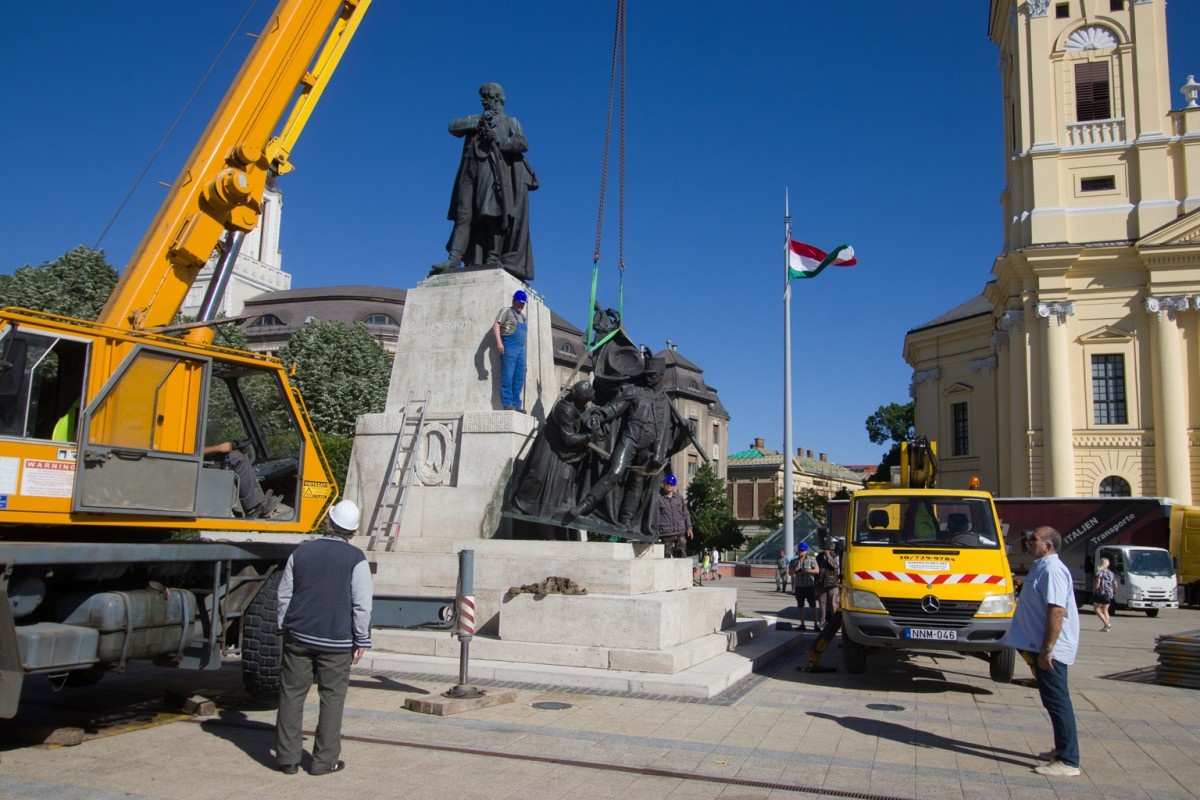 Elvitték a Kossuth-szobrot Debrecen főteréről, még a virágkarnevál előtt visszahelyezik.