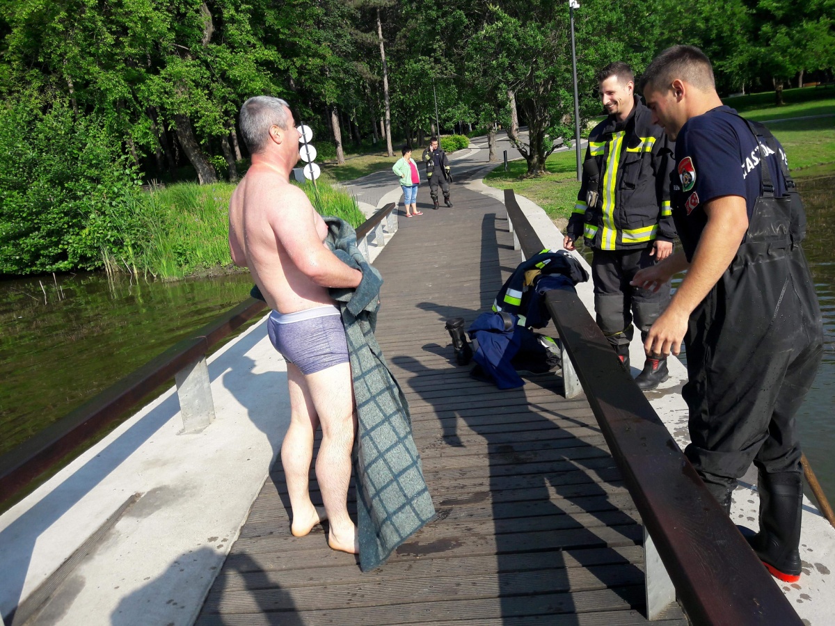 Szombat reggel riasztották a debreceni hivatásos tűzoltókat a debreceni Nagyerdei körútra, a Békás-tóhoz. A tóban egy kacsacsalád egyik tagja a szökőkútba szorult és nem tudott kiszabadulni. Mivel a tó közepén van a szökőkút, halásznadrágban nem tudták megközelíteni az állatot, ezért az egyik önként jelentkező tűzoltó levetkőzött és beúszott a kiskacsáért.