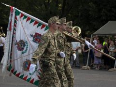 Az ünnepség végén a Legoza Bálint alezredes vezette kontingens katonái díszmenettel tisztelegtek parancsnokaik és családtagjaik előtt.