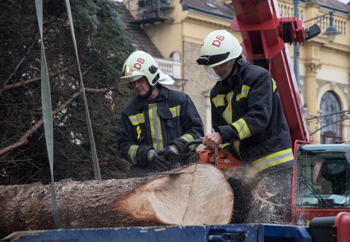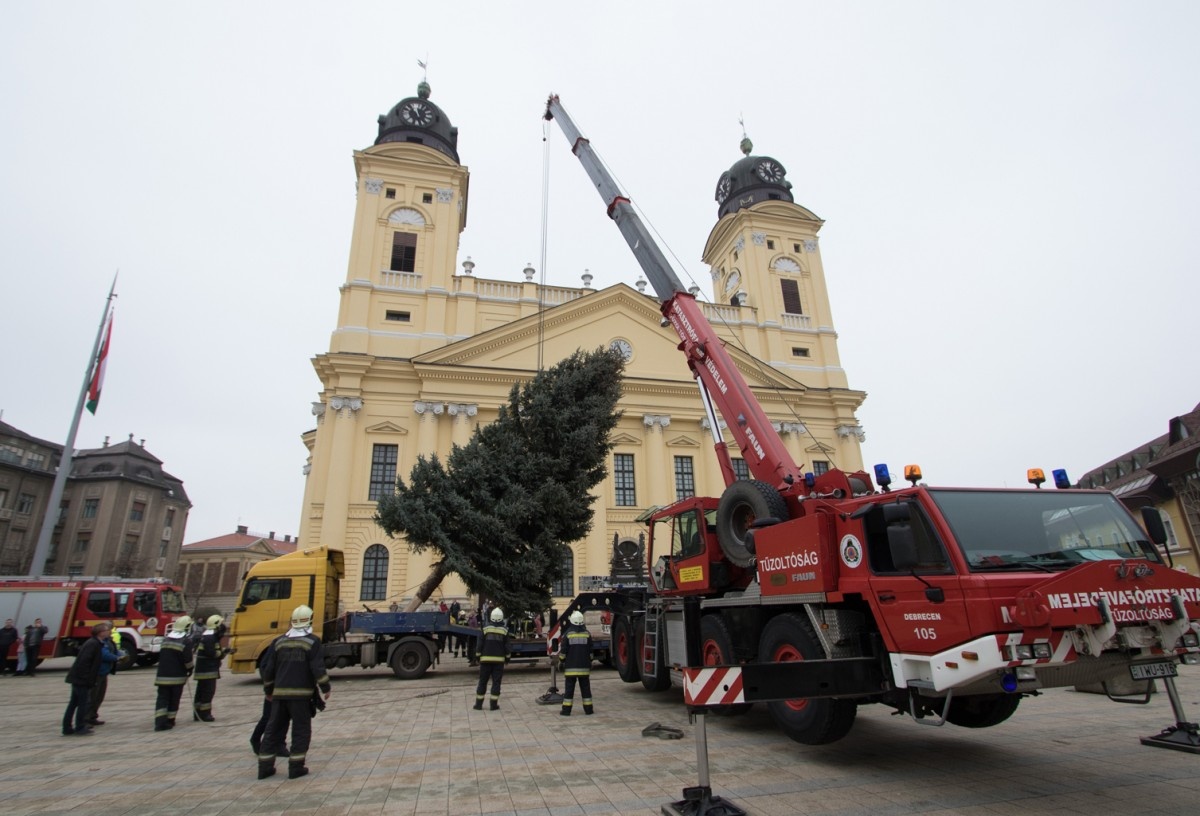 A város karácsonyfája 15 méter magas, s Tarányi József debreceni lakos felajánlása nyomán került a főtérre. A fenyő kitermelésében és felállításában a Debreceni Hivatásos Tűzoltóparancsnokság munkatársai vettak részt. A szállítási útvonal rendőri biztosítását a Debreceni Rendőrkapitányság munkatársai végezték. A szállításról a Vakond Via Kft., a karácsonyfatalpról a DH-Szerviz Kft. gondoskodott, a fa díszítésének technikai feltételeit a Héliker Invest Zrt. biztosítja. A munkálatokban részt vett az AKSD Kft. és a Zöldfény Lámpatelepítő Szerviz Kft. is.