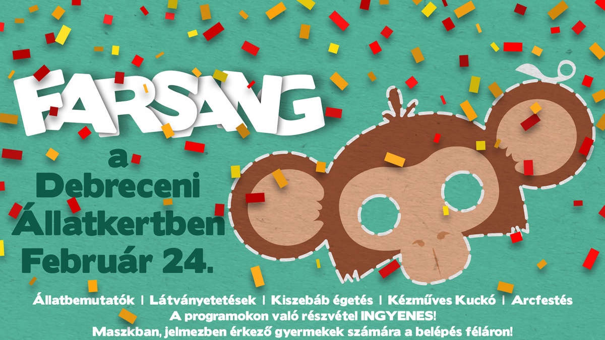 Február 24-én, vasárnap Állati Jelmezbálra invitálja az érdeklődőket a debreceni állatkert. Az állatkert lakói közül is számos faj rendelkezik rejtő „jelmezzel”, melyeket most közelebbről is megfigyelhetnek kicsik, nagyok egyaránt az állatbemutatók és látványetetések során. A gyermekeket a Gibbonházban Kézműves Kuckó várja, ahol állati arcfestésre és kézzel alkotott, vidám portékák elkészítésére is lehetőség adódik. A rendezvény fő pontjaként 14 órakor az állatkert dísztava előtti téren az érdeklődők részt vehetnek a télűző szertartáson, mely során népművészek vezénylésével közösen kiszebábot égethetnek.
