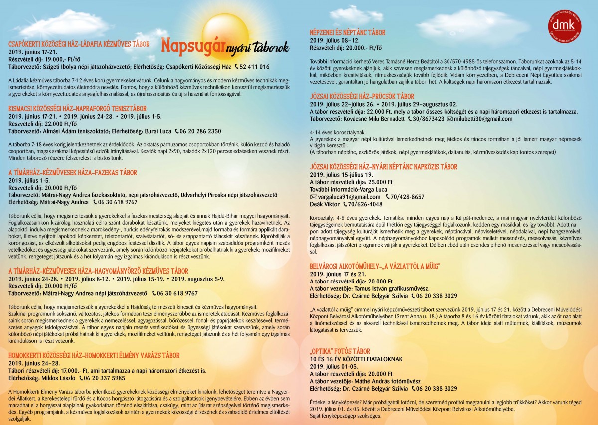 Íme a Debreceni Művelődési Központ 2019-es táborainak listája.