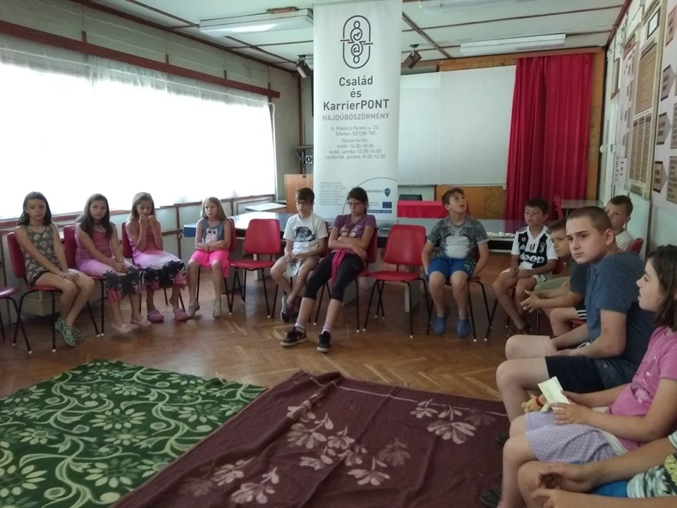 „Legyetek jók, ha tudtok, a többi nem számít” – a közismert filmbeli dal vált a gyerekek kedvenc énekévé Hajdúszoboszlón 2019. június 17-23. között abban a gyermektáborban, amelyben 20 kisdiák a Hajdúböszörményi Család és KarrierPONT programjának köszönhetően vett részt. Fejlesztő, összetett kézműves, mozgáskoordinációs és kommunikációs feladatokat játszottak, énekeltek, strandoltak a gyerekek. Megnézték a helyi múzeumokat, moziztak, és rengeteget játszottak a jó levegőn. Megtanulták az elsősegélynyújtás alapvető fogásait, a humanitás fontosságát. Az interaktív rendőrségi bemutatón ujjlenyomatot készítettek, kortárs sportolók tartottak nekik birkózó-bemutatót. Utolsó nap közösen táncolt, énekelt az immár összeszokott kis csapat. A gyerekek lépéseket tettek egymás felé, elfogadták, megszerették társaikat különbözőségeikkel együtt, és segítettek egymásnak. Olyan kisdiákokat vontak be a szervezők, akiknek nem volt lehetőségük a nyaralásra családjuk anyagi helyzete és/vagy egészségügyi állapotuk miatt.