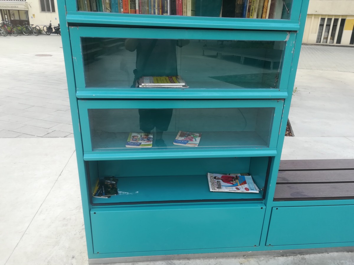 Pénteken délután a tér felé vitt az utam, kíváncsi voltam, hányan látogatják a szekrényt, hisz’ éppen azok érdekében lett felállítva, akiknek a több ezer forintos könyvekre bizony nem futja.