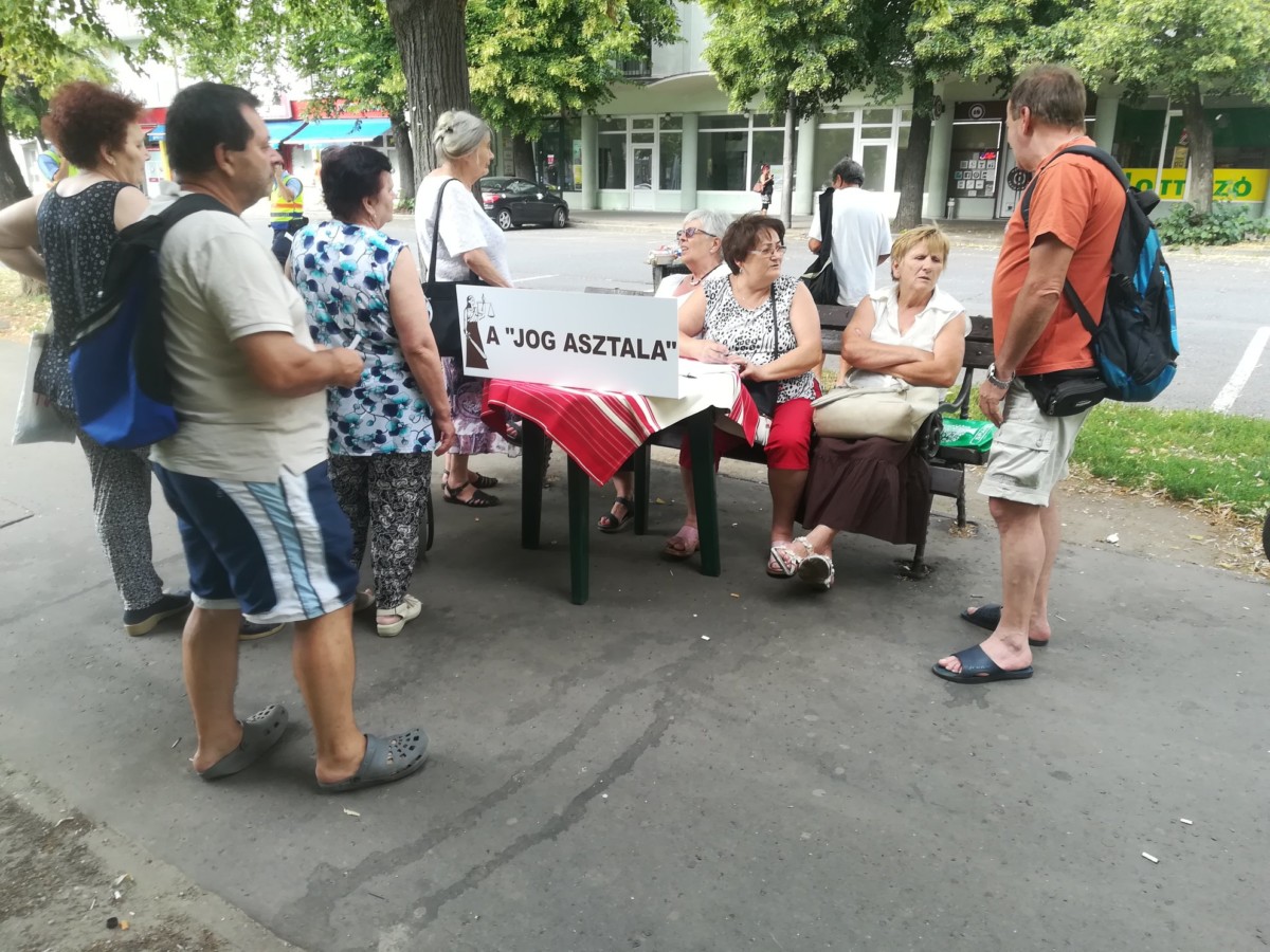 A következő alkalommal 2019. szeptember 5-én /csütörtök/17.00 -18.00 óra között várják a felvilágosítást, tanácsot, információt kérőket a Petőfi téren, a “Jog asztalánál”.