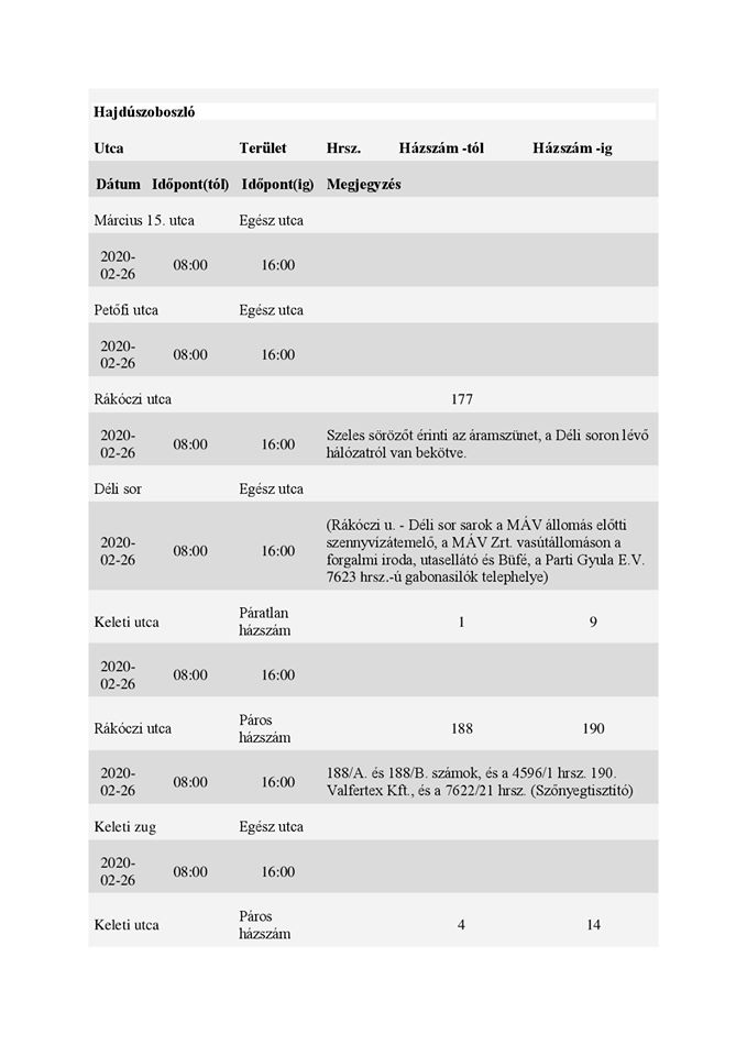 2020.02.26-án ismét áramszünet lesz Hajdúszoboszlón.