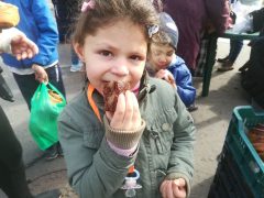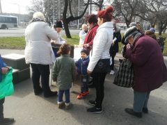 Kisnyugdíjasok, utcán élők, gyermekes családok. Többségük már visszatérő vendég. Miközben a sorban várakoztak sokan panaszkodtak arra, hogy alacsony a nyugdíj, hónap végére már gyógyszerre sem telik. De mindig vannak új vendégeink is, sajnos az éhség nagy úr. Egyre többen kerülnek a városunkban is kilátástalan élethelyzetbe, amikor segítség nélkül nem találnak kiutat. A mi segítségünk ugyan csak egy csepp a tengerben, de a nélkülöző embertársaink számára sokat jelent. Egy olyan hétvégi napot, amikor jól tudnak lakni. És ez napjainkban sajnos sokak számára nem természetes. Most is többen jöttek a kertségekből, ahol a családok egy része igen kiszolgáltatottan, mostoha körülmények között él.