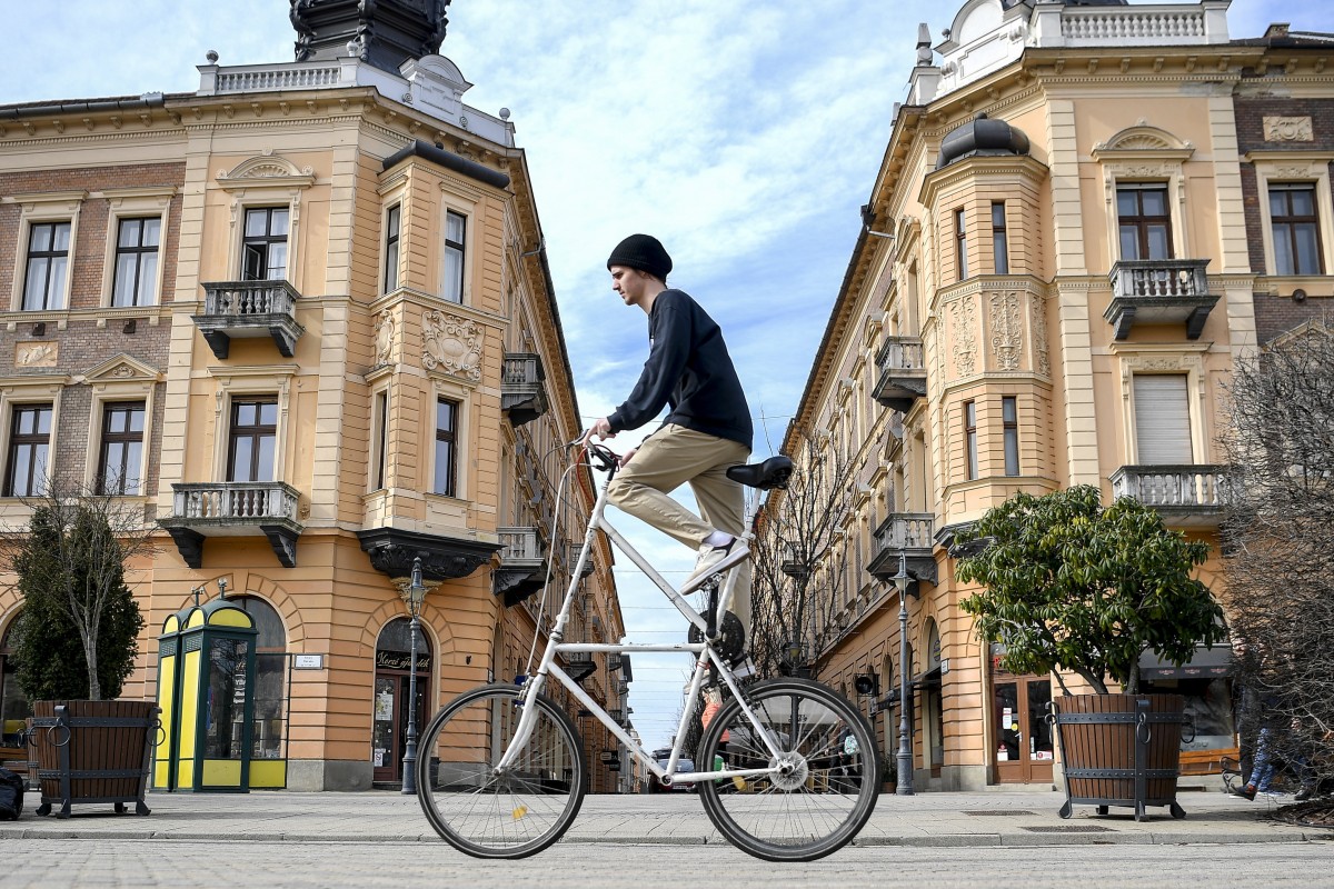 Valószínűleg ez lehet a város leglátványosabb kerékpárja. Saját készítésű, közel három méter magas biciklijével közlekedik Debrecenben Márton Dávid. Nem csoda, ha sokan megbámulják, ilyen látványosságot ritkán láthatunk az utcán.