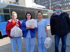 A kis közösségünk úgy döntött, hogy vasárnap a megye három egészségügyi központjába, a frontvonalban életüket is kockáztató egészségügyi dolgozókat vendégeljük meg. Ők azok, akik mérlegelés nélkül túlórázva, bátran szembenéznek a vírussal, s helytállnak, jóllehet remegnek értük családtagjaik.