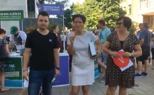 A független Szél Bernadett és Hadházy Ákos által kezdeményezett, és több ellenzéki párt által is támogatott, úgynevezett valódi konzultáció állomása volt kedden Debrecen.