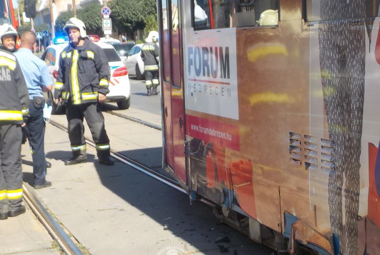 Egy villamos és egy autó ütközött össze tegnap Debrecenben, a Péterfia utcán.