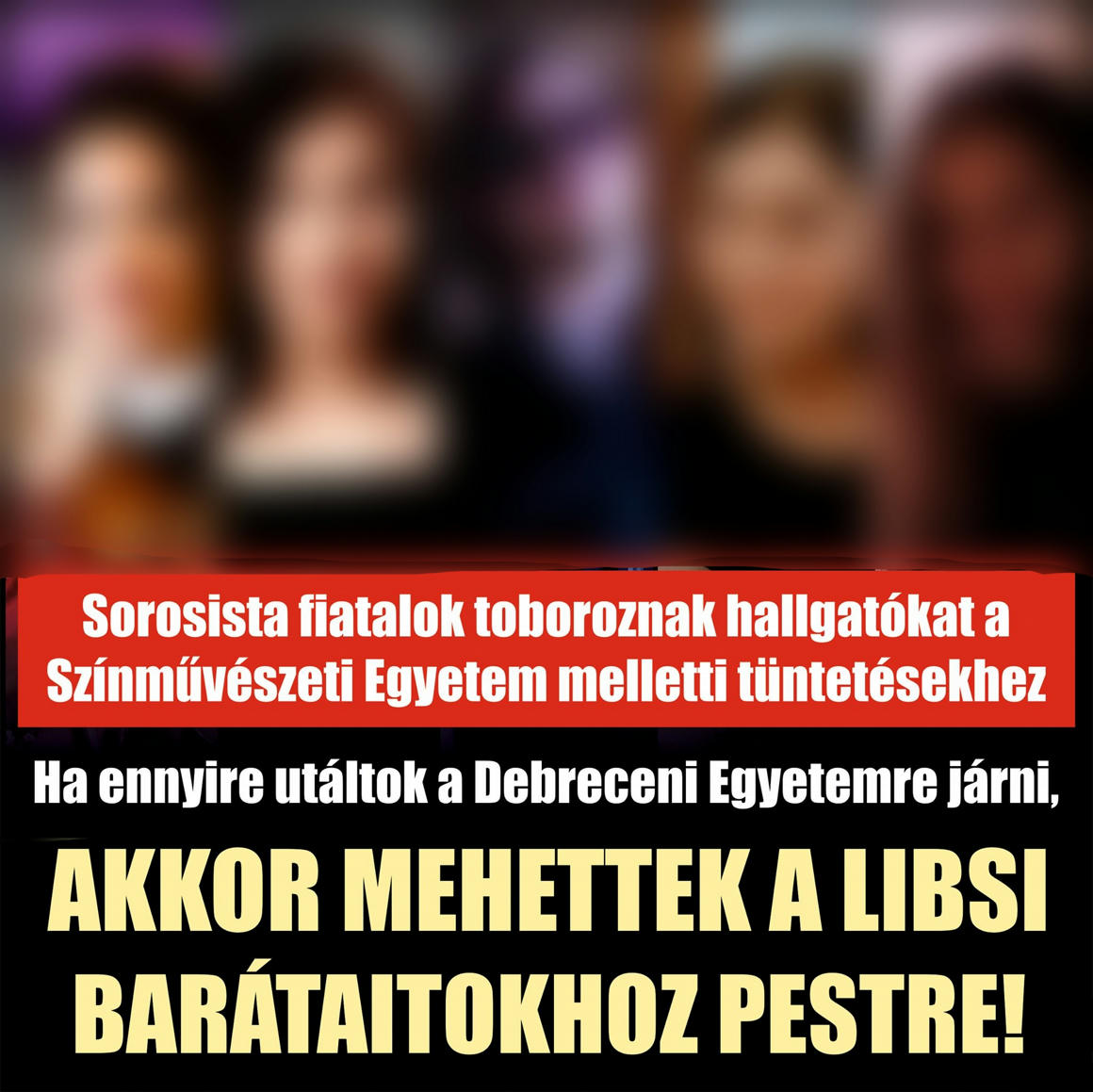Sorosista fiatalok toboroznak hallgatókat a Színművészeti Egyetem melletti tüntetésekhez. Ha ennyire utáltok a Debreceni Egyetemre járni, akkor mehettek a libsi barátaitokhoz Pestre.