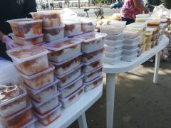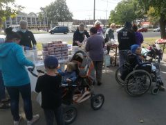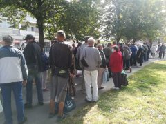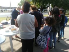 Kellemes őszi napsütésben gyülekeztek a Morzsapartira a debreceni szegények. Többségük rendszeres vendégünk, de mindig vannak, akik először jönnek. A kezdés előtt jó egy órával már közel százan várták, hogy ételhez jussanak. A jó időben egyre nőtt a számuk, a Morzsaparti végére,becslésünk szerint 200 főt tudtunk megvendégelni. A menü igazán változatos volt: többféle leves, rizses hús, babgulyás, rengeteg péksütemény, kenyér, dinnye várta azokat, akik hétvégén nem engedhetik meg maguknak, hogy főtt ételt egyenek.
