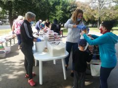 Kértük, hogy az ételre várók maszkot hozzanak magukkal. Ügyeltünk arra, hogy a sorban állók között 1,5 méter távolság legyen. Helyszíni fogyasztás a járványra tekintettel nem volt, akik nem hoztak magukkal ételhordó edényt, az egyesület biztosított.
