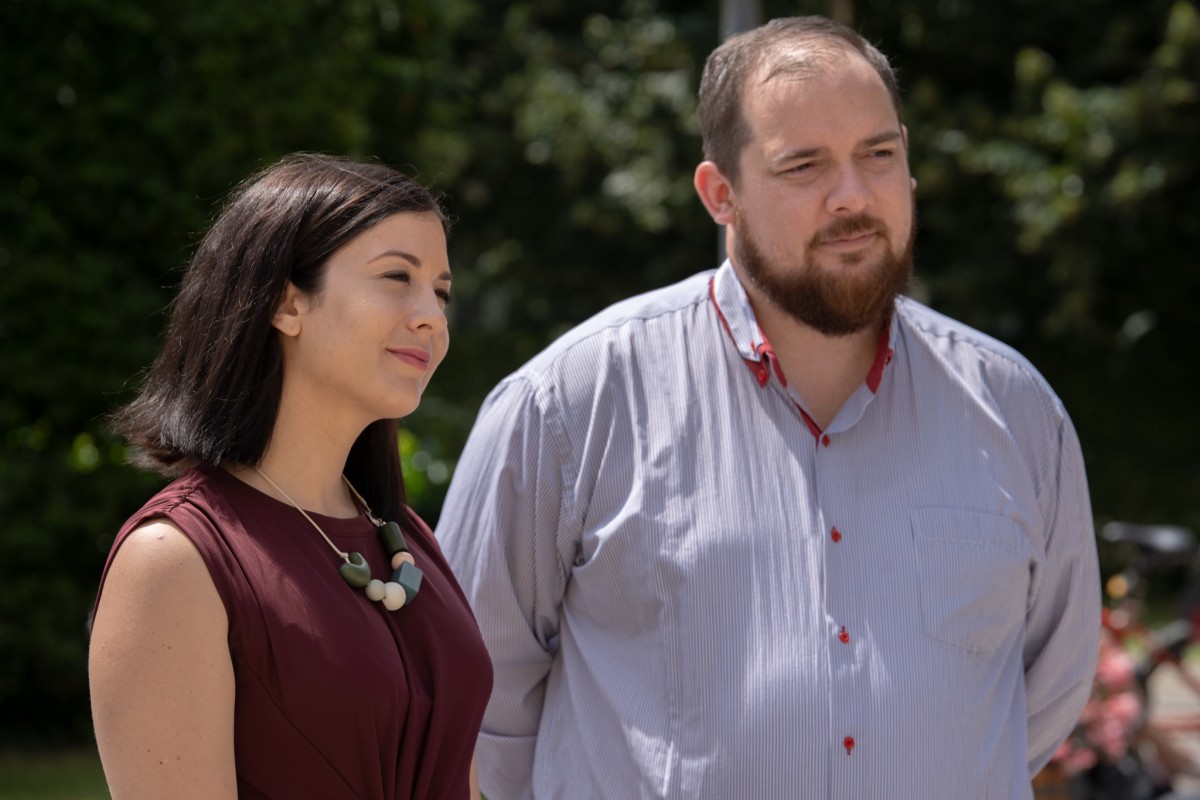 Fotó: Cseh Katalin, a párt EP-képviselője és Mándi László, a Momentum debreceni önkormányzati képviselője, a párt elnökségi tagja.