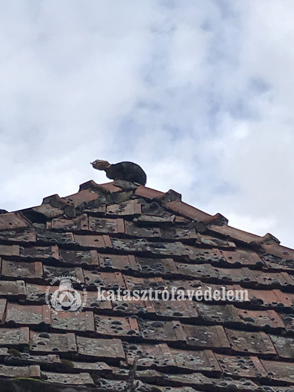 A Böszörményi útra is riasztották az egységeket. A tűzoltók dugólétrán át, láncfűrész és csáklya segítségével jutottak az állathoz, majd átadták a gazdájának.